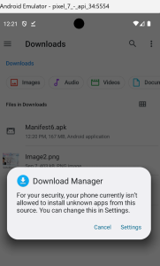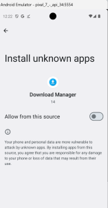 on clicking open Android download manager will issue a warning about ‘unknown’ apps – It is safe so switch ‘allow from this source’